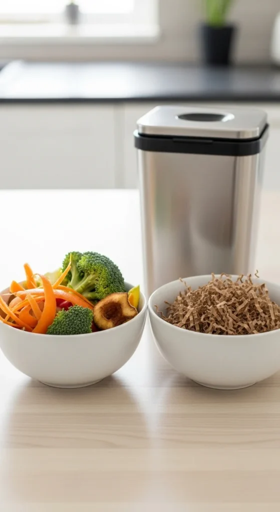 For beginners, this sounds more complex than it really is. It is just a matter of sorting scraps into two simple streams. A countertop bin can still collect everything first, then the sorting happens once a day. That keeps the kitchen routine easy.
