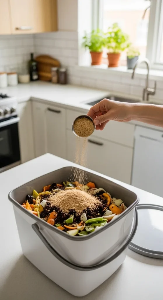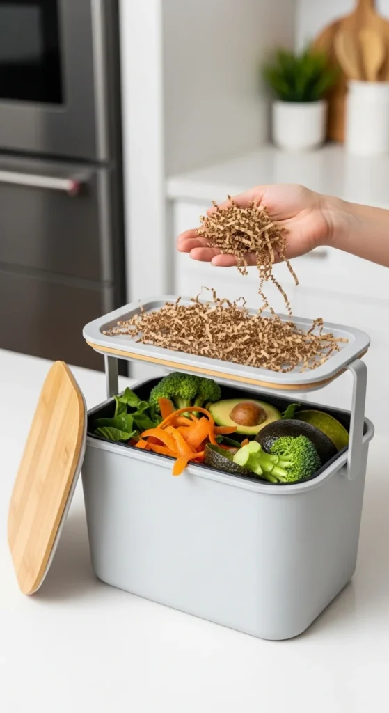 For beginners, this one habit solves several problems at once. It helps with smell, moisture, texture, and flies. In a small apartment compost setup, shredded cardboard is not just useful. It is often what keeps the whole system working smoothly.