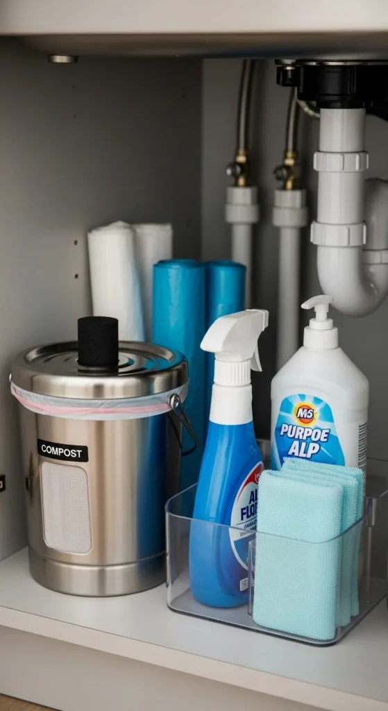 A low-cost setup can use a simple filtered bin instead of a decorative premium one. What matters is function, not branding. If scraps are emptied often and the filter gets swapped when it should, the kitchen stays far more comfortable.