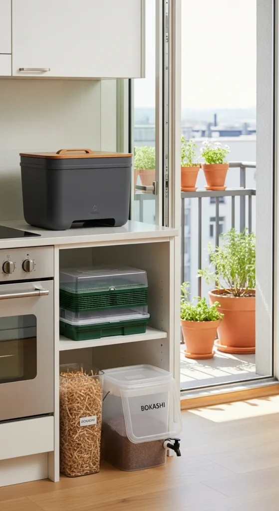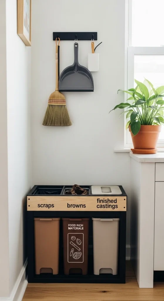 For beginners, organization often matters more than composting theory. A tidy station makes it easier to stick with the habit and easier to spot when something is off. In apartment life, that convenience can be the difference between a system that lasts and one that gets abandoned.