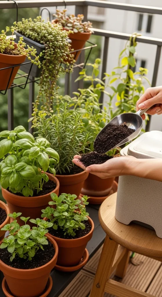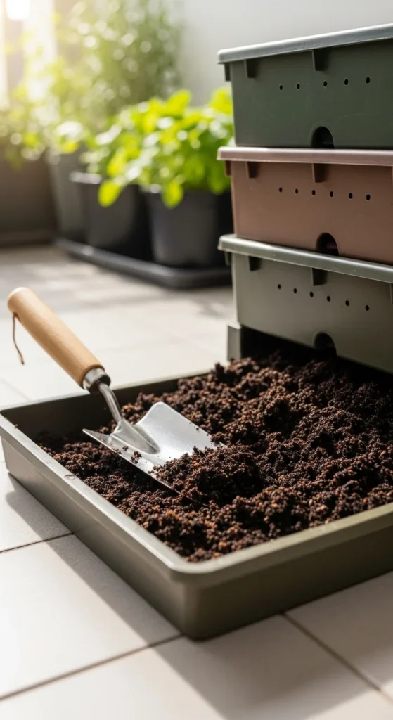 Apartment composting becomes much more satisfying when the finished material gets used soon after harvest. Worm castings, finished compost, or compost tea can go straight into herb pots, balcony planters, or houseplant soil. That closes the loop and makes the whole effort feel worthwhile.