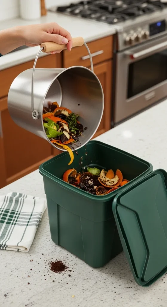 - Worm bin: handles small daily kitchen scraps
