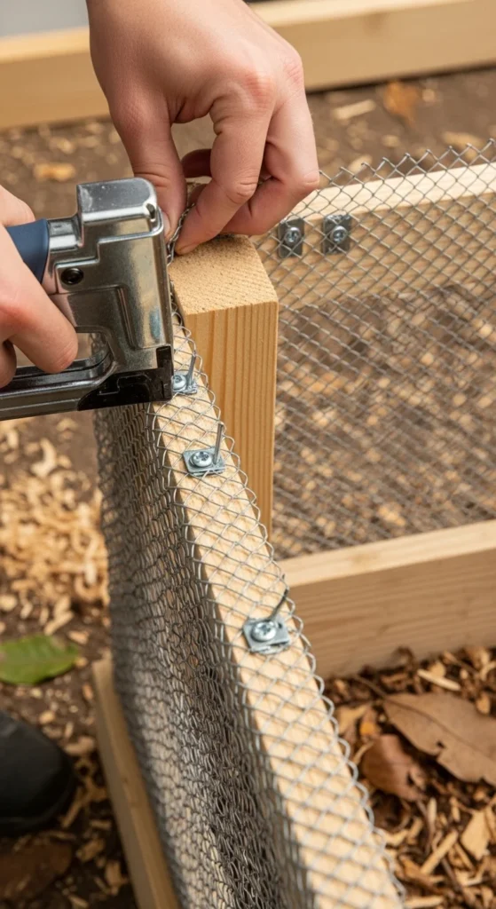 - Lay hardware cloth under the bin.