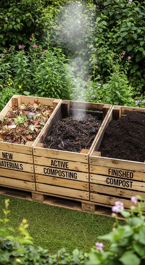This setup is great for suburban yards with steady leaf and grass input. It also keeps you from mixing fresh scraps into finished compost.