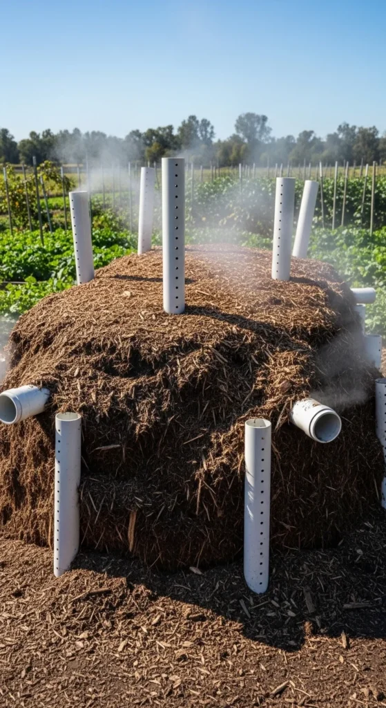 If turning is hard, pipes bring air into the pile.