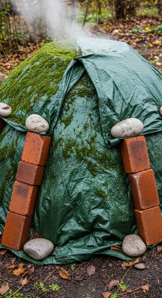 A “cap” of leaves acts like a lid that still breathes.