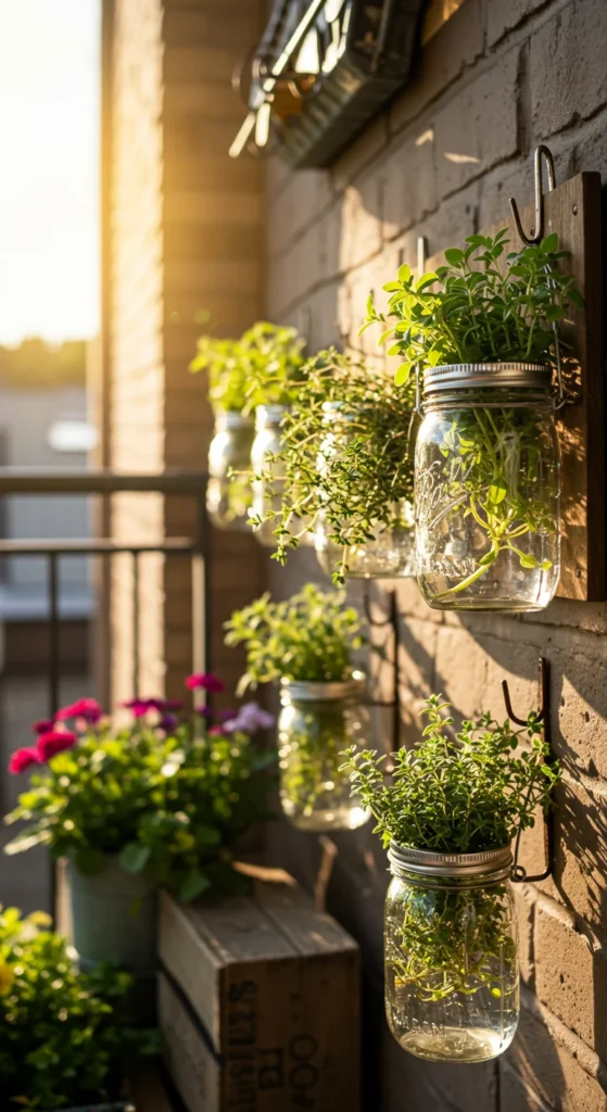 Mason jars can be repurposed into hanging planters. Fill with soil and small herbs like thyme or chives. Use hooks or a wooden board to hang them along a wall. This is a charming, budget-friendly idea that doubles as décor. Make sure to drill small drainage holes in the lids.