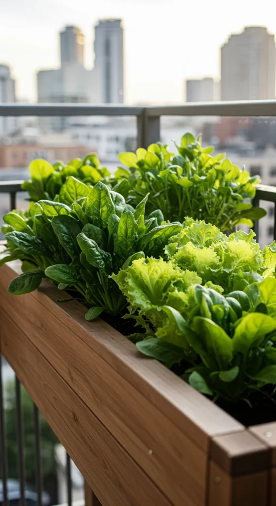 Why not grow salad greens on your balcony? Use long wooden or plastic boxes and fill with quick-growing greens like lettuce or spinach. Harvest leaves regularly to keep plants producing. It’s inexpensive, practical, and healthy.