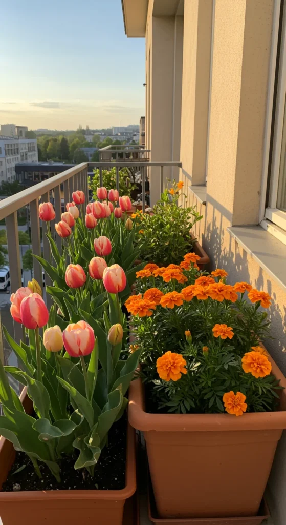 Keep your balcony garden lively by rotating seasonal flowers. Start with tulips or daffodils in spring, switch to marigolds or zinnias in summer, and chrysanthemums in autumn. This keeps the balcony colorful all year long.