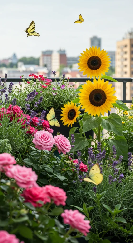 Plant butterfly-attracting flowers like lantana, zinnias, and marigolds. Add a shallow water dish for them to rest. This makes your balcony lively and draws attention from neighbors.