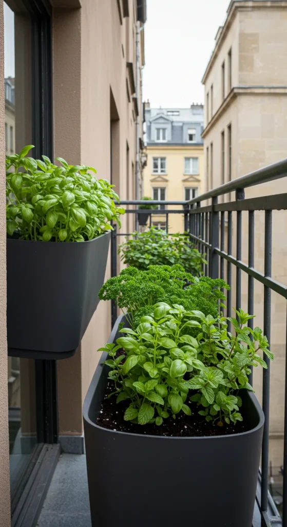 Rail planters are practical and stylish. They fit neatly on balcony rails and let you grow herbs right at hand. Imagine plucking basil or mint while cooking dinner. Choose lightweight plastic or metal rail planters with drainage holes. Herbs like thyme and parsley thrive in these shallow containers. Rotate plants occasionally for even sunlight.