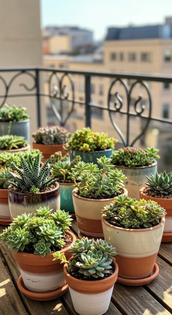 Succulents are low-maintenance and perfect for busy people. Arrange different varieties on a table or shelf for a stylish display. Play with pot shapes and textures—ceramic, terracotta, or even painted tins. Succulents need little water and add visual variety with their unique shapes.