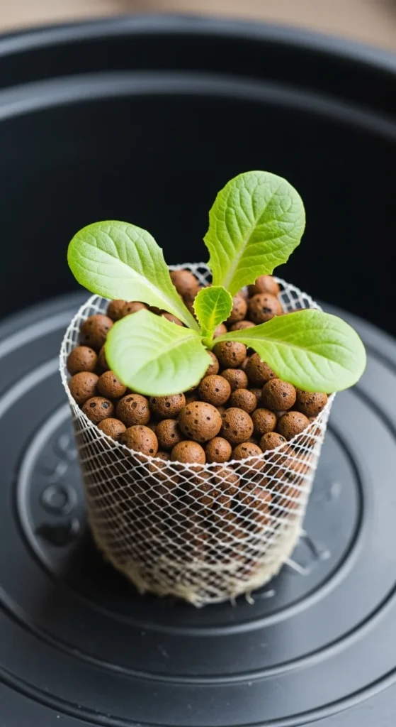 Once roots appear, move cubes into net pots filled with clay pebbles.