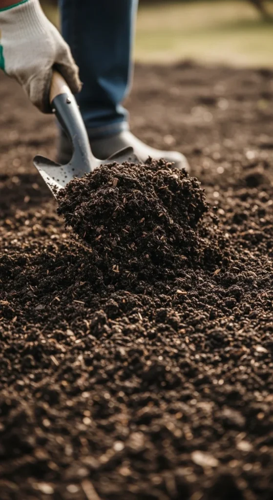 Mix compost gently into the top few inches. Avoid aggressive digging that disturbs soil life.