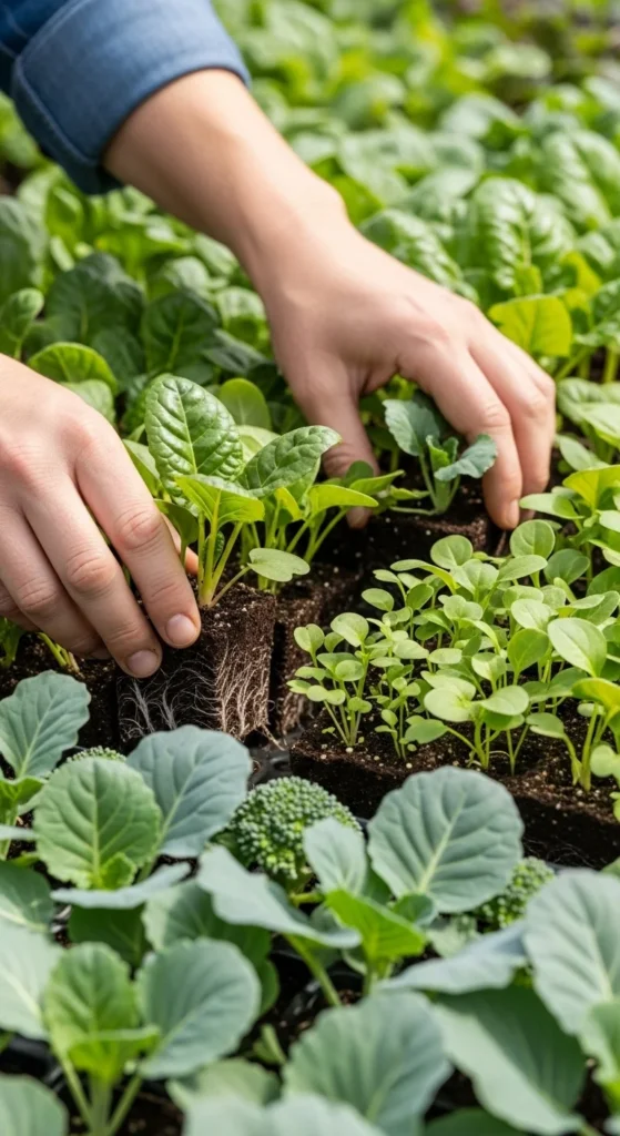 Choose sturdy seedlings with thick stems and healthy leaves. Avoid leggy or yellowing plants.