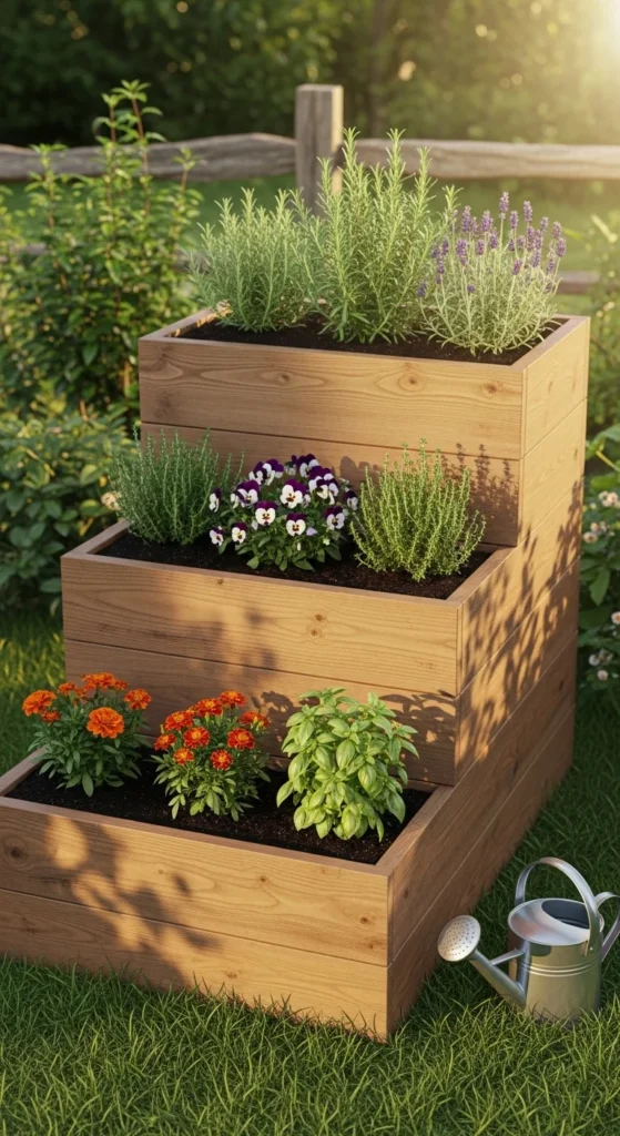 Build a tiered bed using leftover wood or inexpensive planks. Each tier holds soil at different heights, ideal for small plots or patios. The stepped design allows easy access and drainage. Cost remains low if using recycled wood. Plant shallow crops like lettuce at the top and deeper roots below.