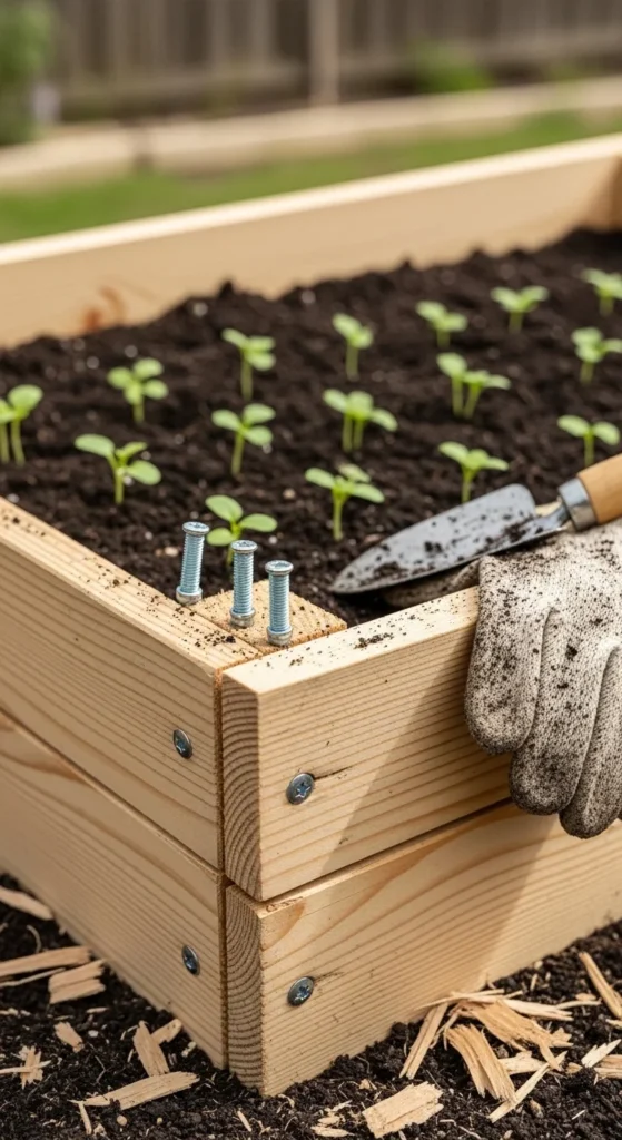 Build a bed using only screws and a screwdriver. Avoid power tools for beginner-friendly construction. Use recycled wood or inexpensive planks. Assembly is simple, and the bed can be disassembled if needed. This approach suits renters or those new to gardening. Budget-friendly and low-effort.