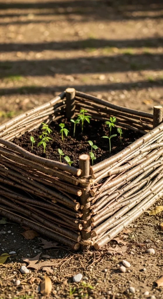 Use natural materials like twigs, branches, or small logs to outline a bed. It’s nearly zero-cost and blends with the yard. Tie sticks with rope or garden twine. Fill with soil and compost. Perfect for herbs or small vegetables. Eco-friendly and lightweight, this method works for temporary or seasonal beds.