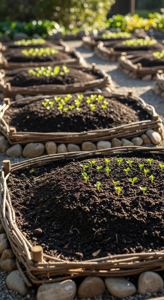 For the absolute cheapest option, mound your soil directly on the ground. Shape raised rows or blocks, amend with compost, and plant. No wood or blocks are needed, which makes it ideal for very tight budgets. These beds drain well and warm quickly in the spring. Use twigs or rocks to create edges. This method works for salads, herbs, and shallow-rooted vegetables.
