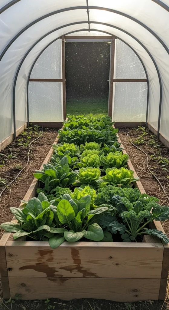 If you have a polytunnel, use lightweight boards or cinder blocks to create cheap raised beds inside. Beds can be shallow (6–8 inches) for salads or deeper for vegetables. Ensure the base drains well. This allows year-round growth and protects plants from frost. Materials are inexpensive and reusable in future seasons.