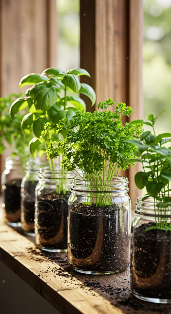 1. Grow Herbs in Mason Jars