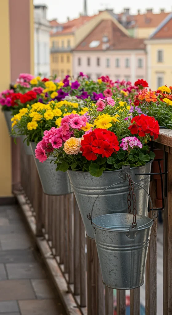 Metal buckets can be hung as planters. Add drainage holes and plant flowers or herbs. Hanging them along a railing frees up floor space while creating a charming display. Buckets are affordable and easy to decorate to match your style.