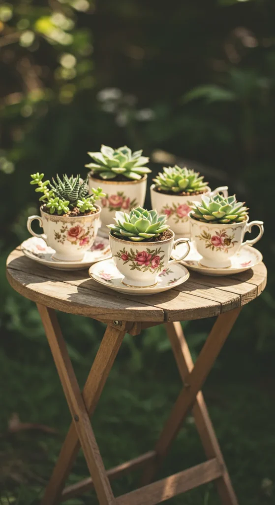 Succulents don’t need much soil or water, making them perfect for teacup gardens. Arrange them in mismatched cups for a charming tabletop display. This adds greenery indoors without using much space at all.