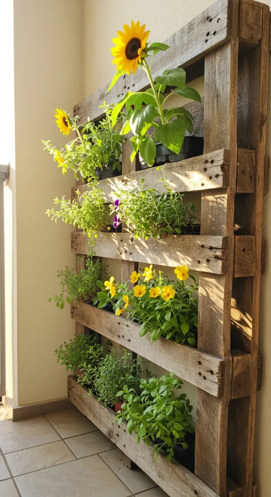 Pallets are a budget-friendly way to create vertical gardens. Attach fabric pockets or fill the pallet slats with soil. Grow herbs, lettuce, or flowers in the slots. Lean it against a wall or hang it upright for a striking display. This saves valuable floor space while packing in plenty of plants.