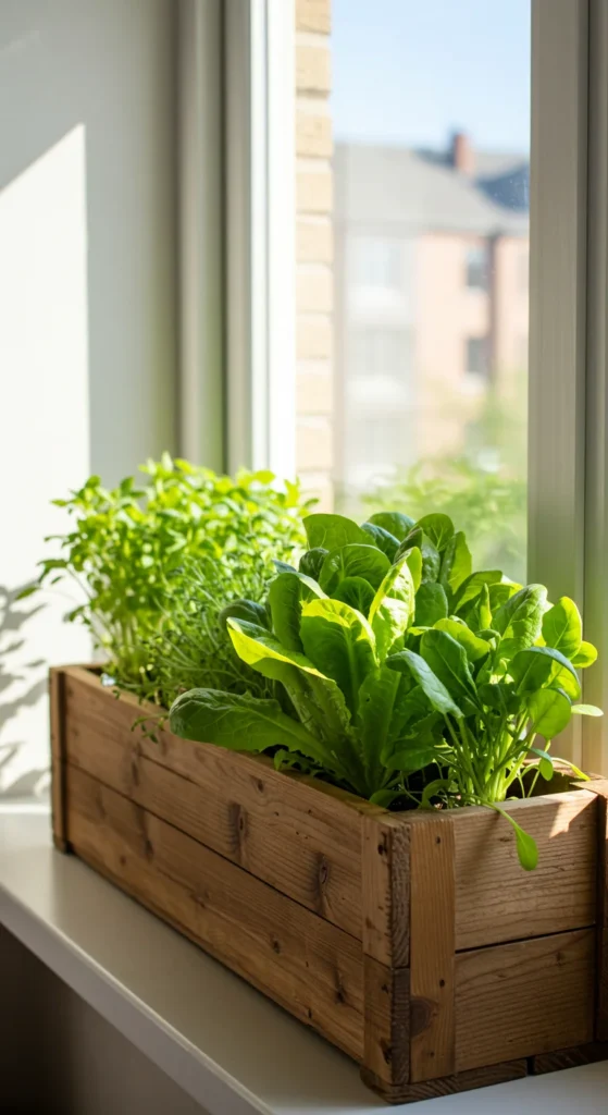 Window boxes aren’t just for flowers. Plant salad greens for easy access right from your kitchen window. Use shallow boxes with drainage holes and lightweight potting soil. Salad greens grow fast and can be harvested continuously, making window boxes a practical space-saver.