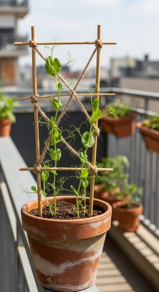 Vertical support helps small spaces. Bamboo stakes and twine can form a quick trellis. Use it for peas, cucumbers, or climbing beans.