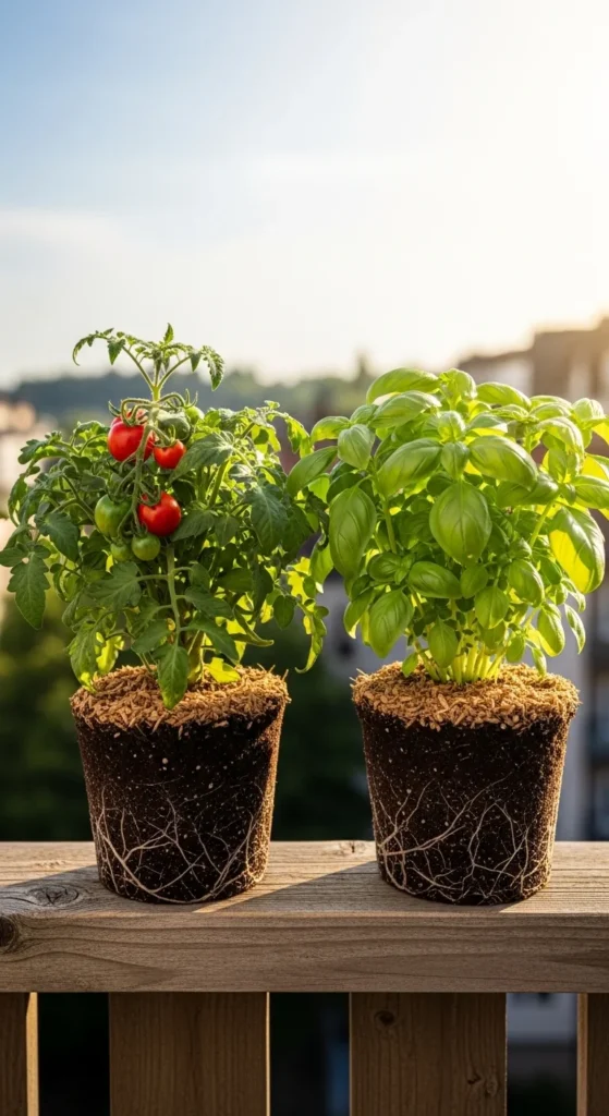 Budget tip: one 5-gallon pot for a tomato, one small pot for basil. This combo is simple and beginner-friendly.