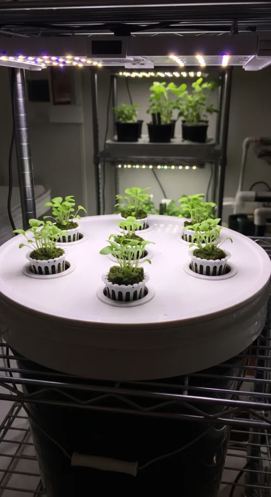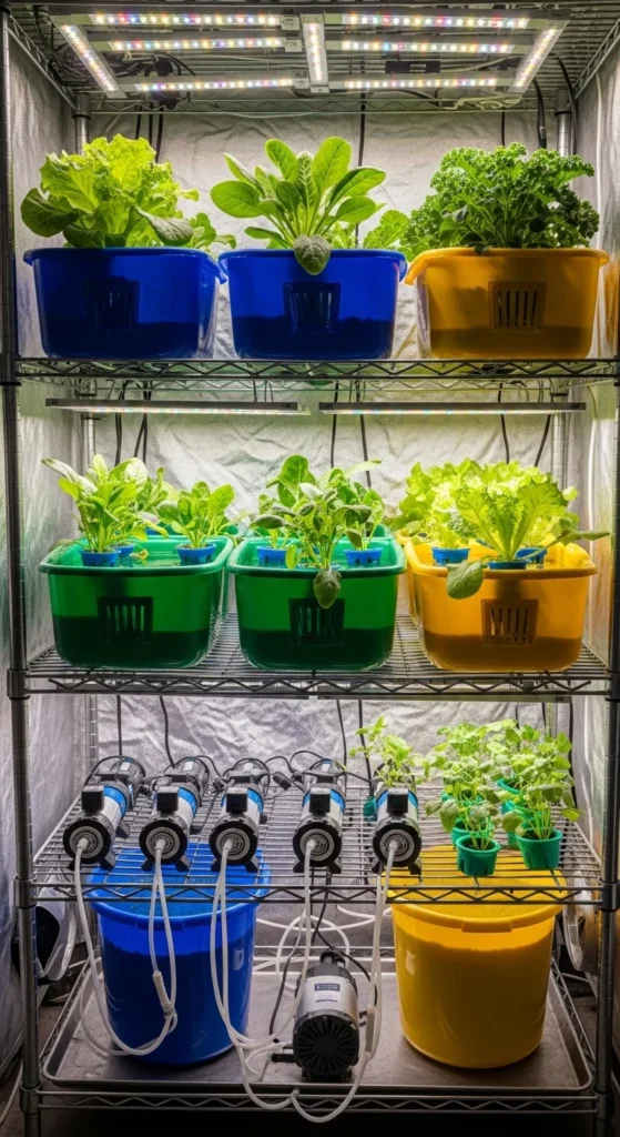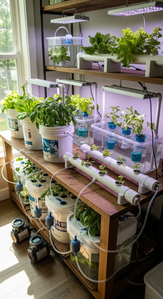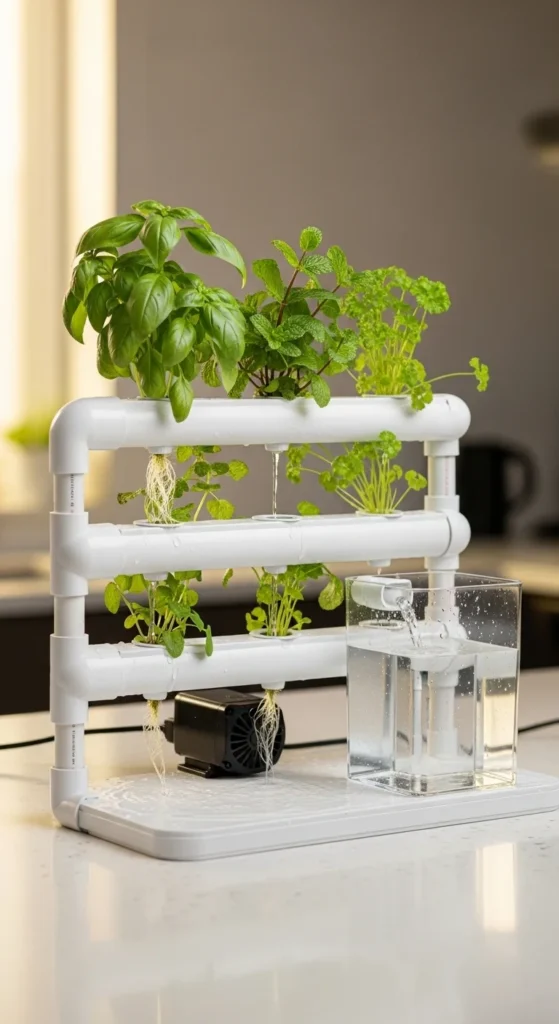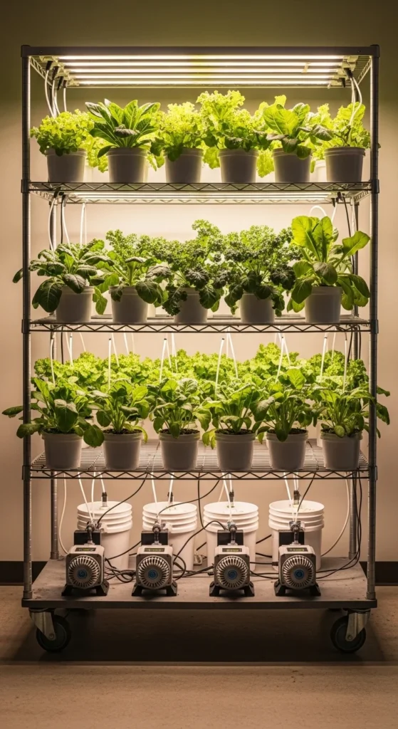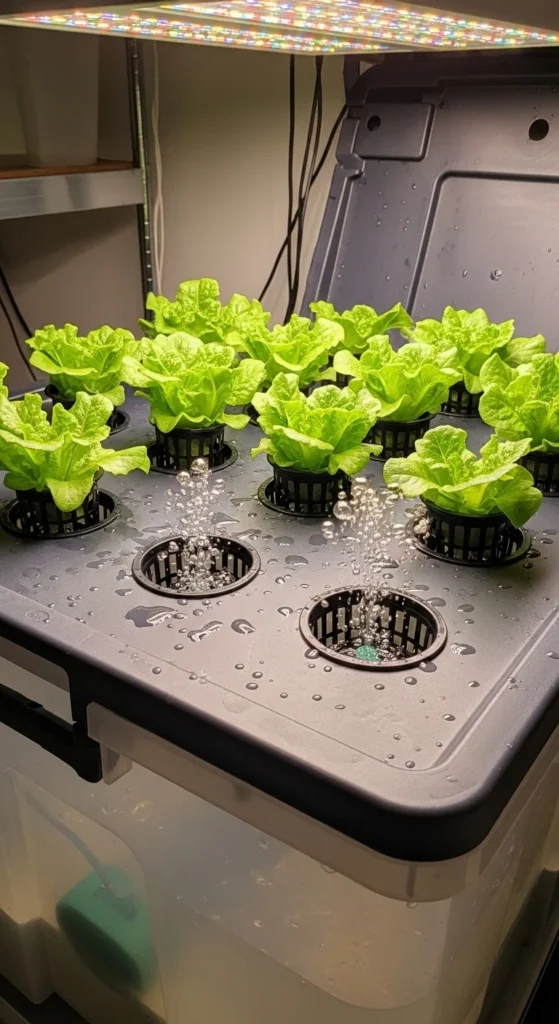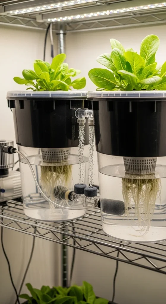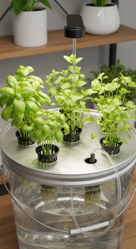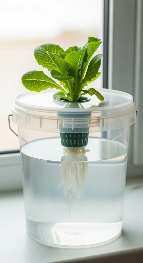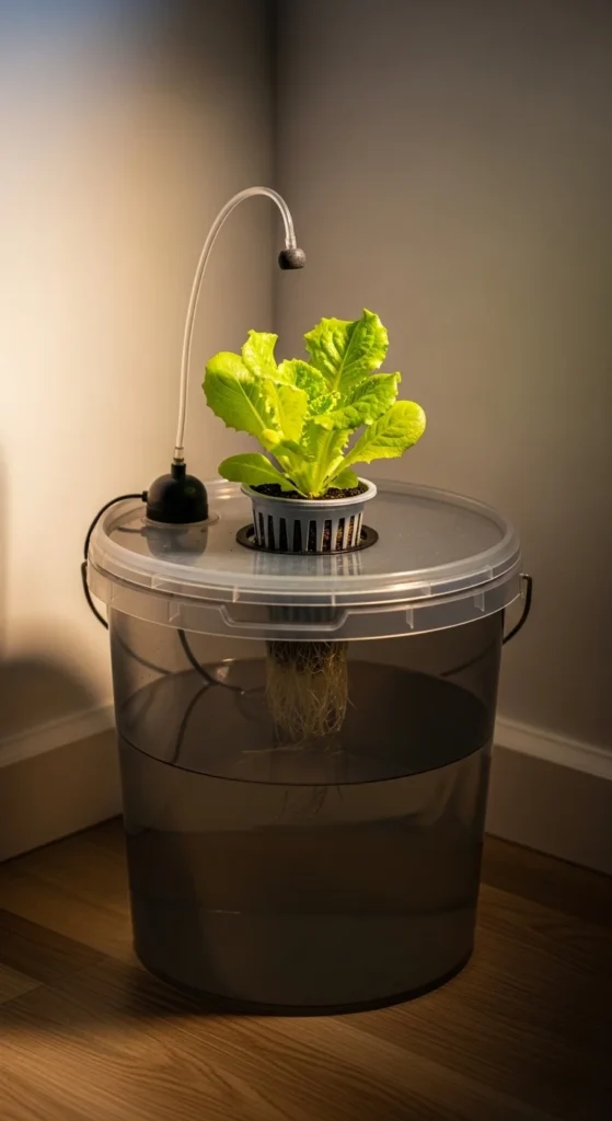This setup works well for lettuce and basil. It’s quiet, compact, and cheap. Many people build it in under an hour. Change the water weekly and rinse the bucket with plain soap between refills.