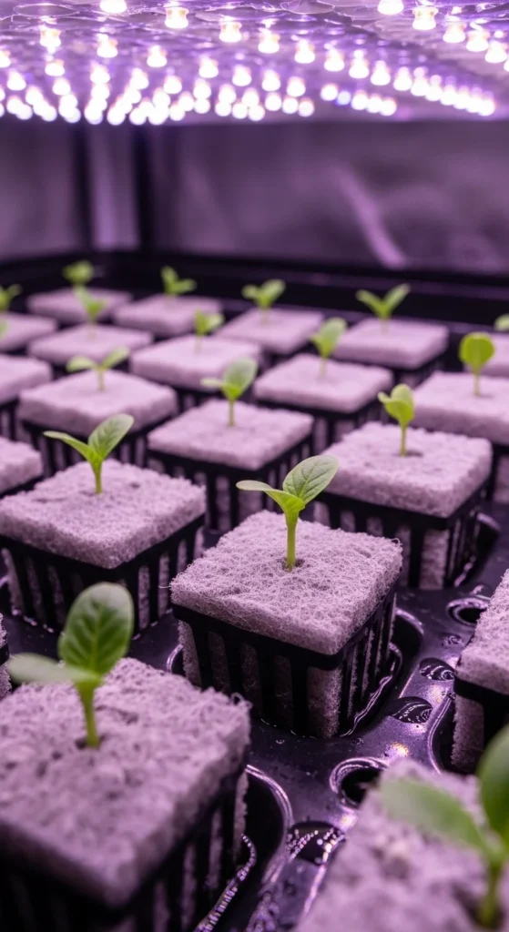 Start seeds in net pots with rock wool. Move them later into buckets or pipes.
