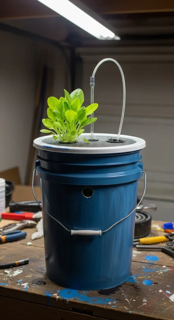 This build costs almost nothing. It works best for short-cycle crops like leafy greens. Top off water as it drops. Keep the bucket opaque to block algae.