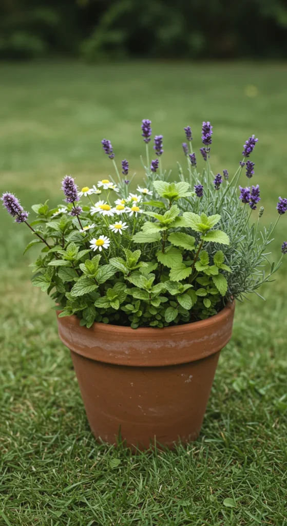 Plant herbs that can be dried for teas. Chamomile, lemon balm, mint, and lavender all thrive with minimal care. Harvest leaves or flowers, dry them, and store in jars for homemade tea year-round.