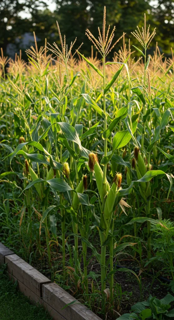 Corn grows best when planted in blocks instead of single rows. Even a small patch can yield dozens of cobs. Pair it with beans and squash in a classic “three sisters” garden.
