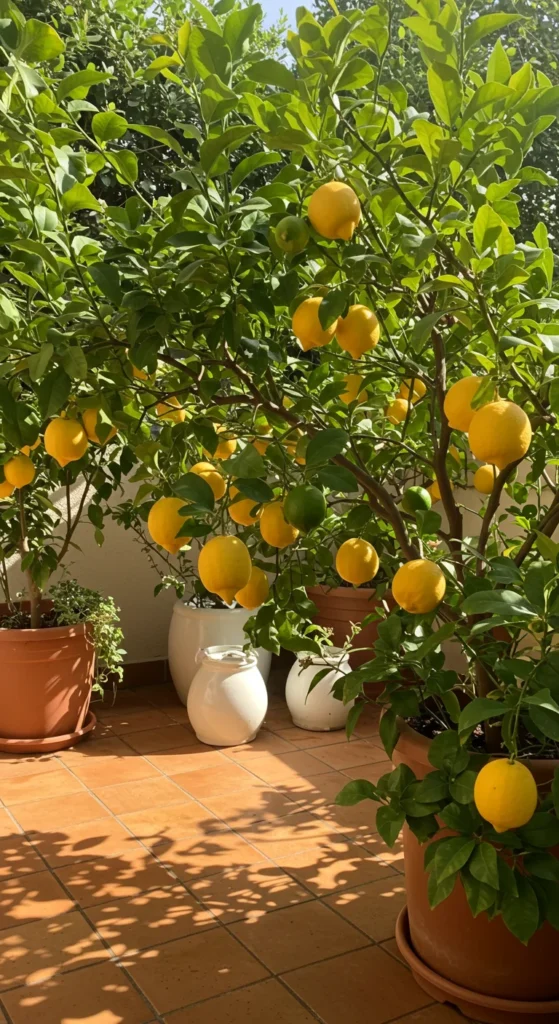 Citrus trees thrive in large containers. Lemons, limes, or mandarins can grow on patios or balconies. Move them indoors in cooler months for year-round fruit.