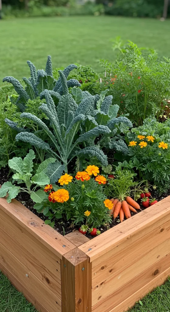 Combine vegetables, herbs, and flowers in one bed for variety and beauty. Mixed planting reduces pests, maximizes space, and gives you multiple harvests from the same spot.