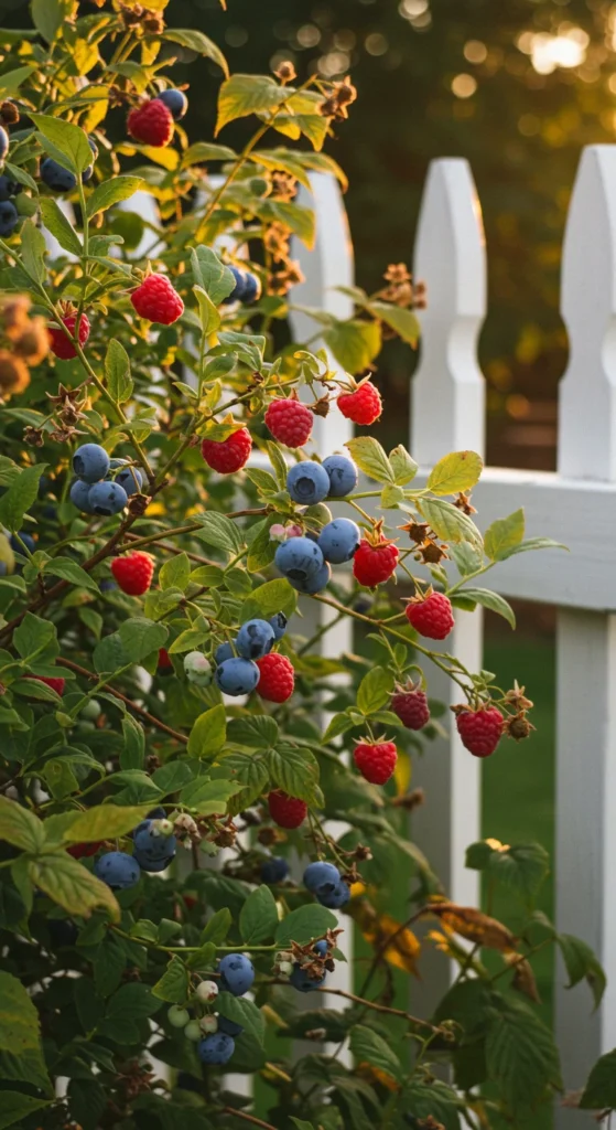 Berry bushes fit easily along fences or garden edges. Blueberries, raspberries, and blackberries return every year with little care. Freeze or preserve extras to enjoy them long after harvest.