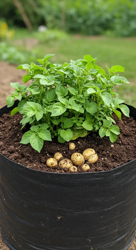 Potatoes don’t require traditional beds. Use grow bags or buckets to harvest pounds of spuds in little space. As the plants grow, add more soil to encourage extra tubers.