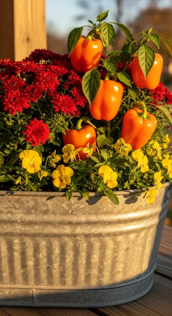 Ornamental peppers bring fiery color and stay strong in cooler temperatures. Combine them with kale or pansies for balance. Keep them in sunlight and they’ll shine until the first hard freeze.