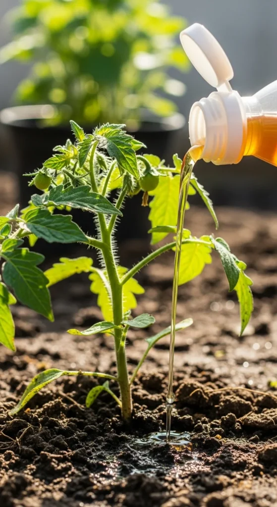 Water the fertilizer around the base—not on leaves—to prevent disease.