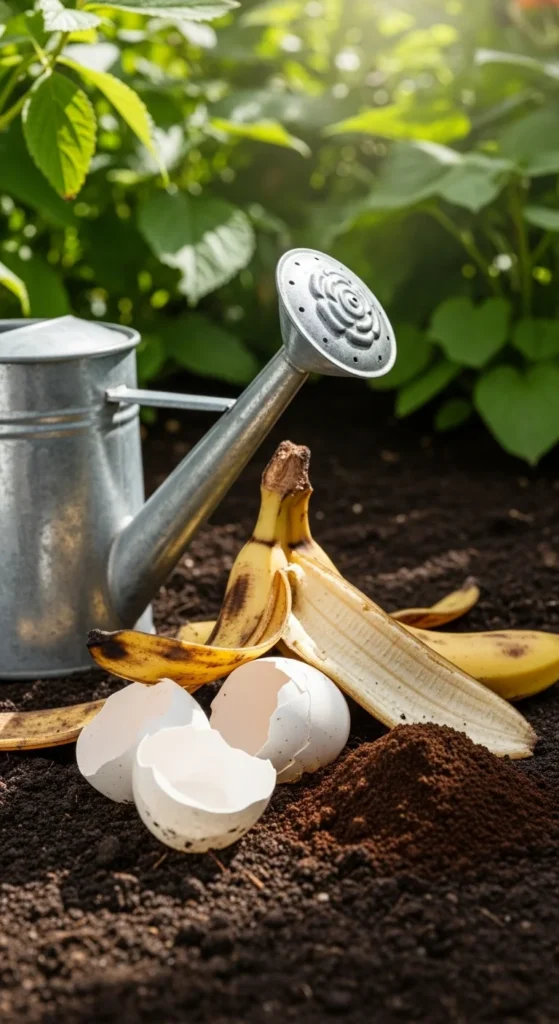 Simple kitchen scraps can act as plant food. Mix banana peels or crushed eggshells into soil for potassium and calcium. Coffee grounds add nitrogen for leafy greens. It’s free and effective.