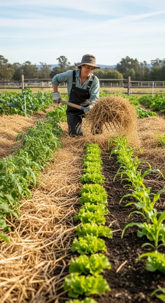 Mulch acts like a blanket for your garden. Use straw, bark, or shredded leaves to cover the soil. It keeps moisture in, suppresses weeds, and improves soil health. A two-inch layer is usually enough.