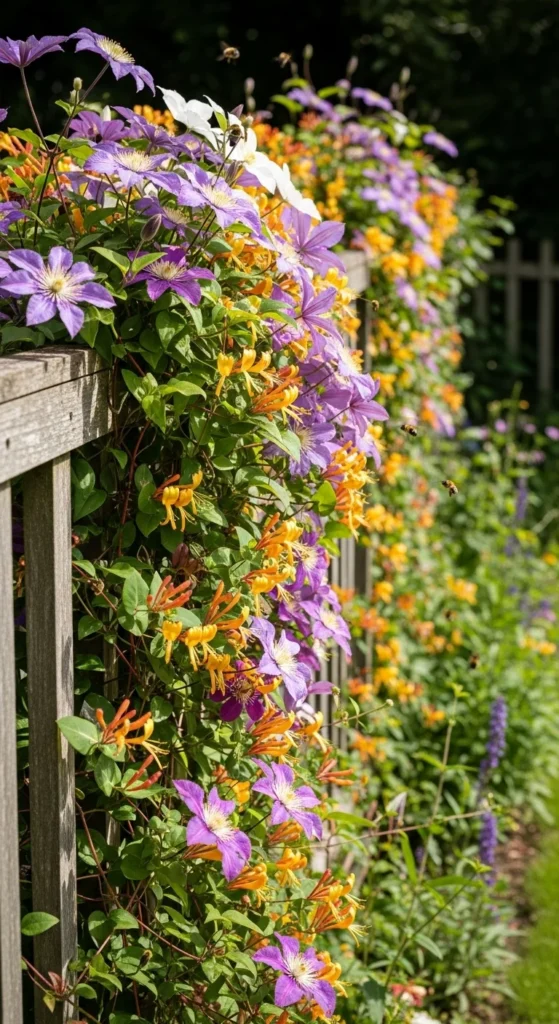 Climbers like honeysuckle, ivy, and clematis provide nectar and nesting cover. Train them over fences, arches, or trellises. Their dense foliage gives birds a safe place to hide from predators. Choose native varieties for maximum wildlife support.