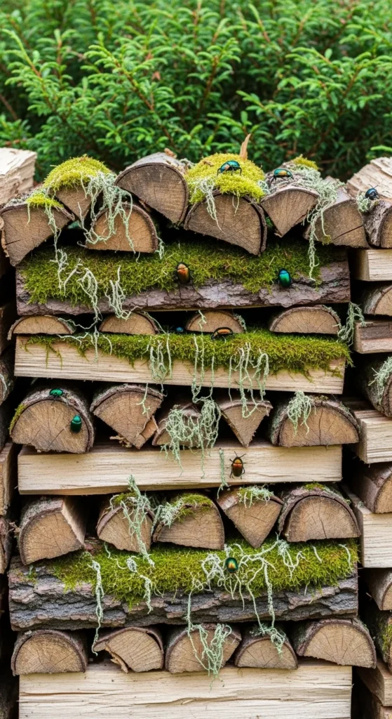 Logs offer shelter for beetles, solitary bees, and even hedgehogs. Stack a few logs in a shaded spot and let them decay naturally. Sprinkle soil or leaves between layers to encourage burrowing insects. This simple habitat helps maintain biodiversity in your garden.