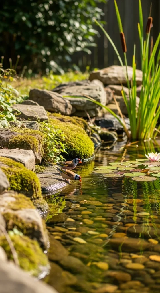 A pond provides water and shelter for frogs, dragonflies, and birds. Even a small tub pond works. Add floating plants like lilies for shade and a shallow edge for easy access. Avoid adding fish—they eat insect larvae. The gentle water movement will attract all sorts of garden visitors.