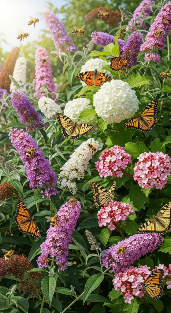 Flowering shrubs like butterfly bush, viburnum, or elderberry provide food and nesting shelter. They bloom for weeks, giving bees and hummingbirds steady nourishment. Trim only after flowering to preserve buds. Layer shrubs with groundcover for diverse height and habitat.