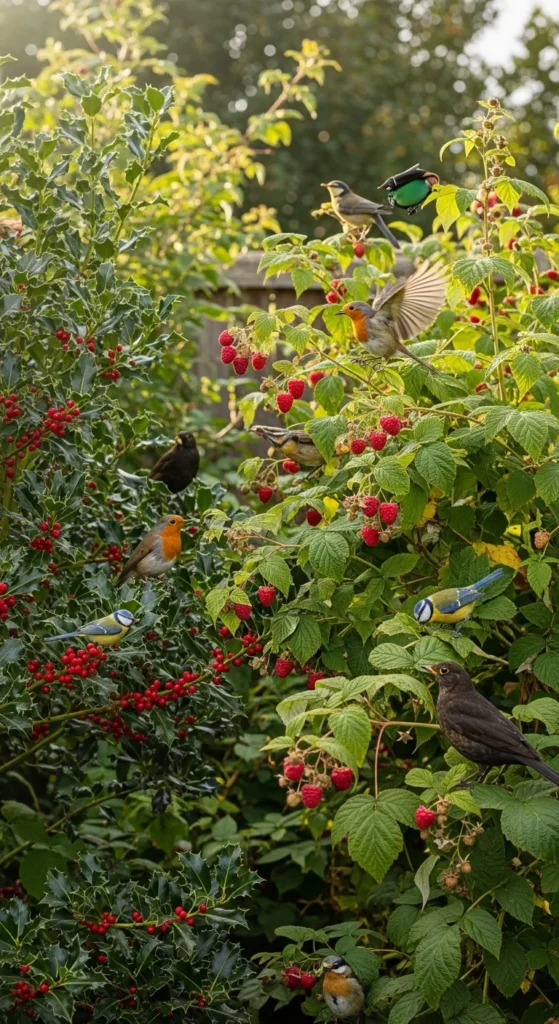 Fruiting plants like serviceberries, raspberries, and holly are bird magnets. They supply natural food without extra maintenance. Birds will spread seeds, helping your garden grow naturally. Choose varieties that ripen at different times for food all year long.