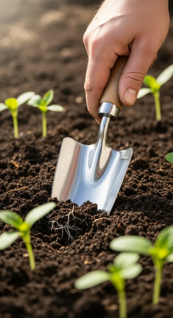 A garden hoe helps you remove weeds and break up soil quickly. Use a short-handled hoe for raised beds and a long-handled one for large plots. Keep the blade sharp to save energy and time.